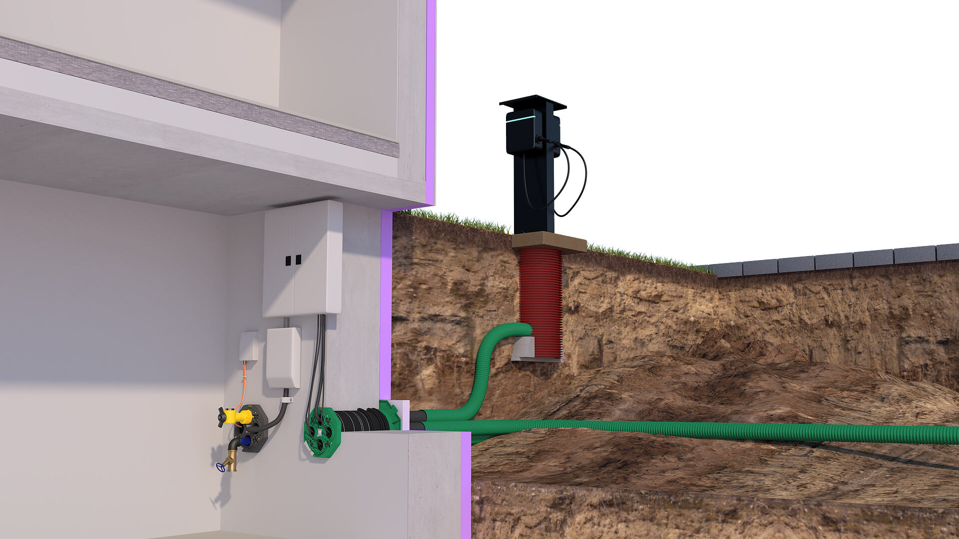 • Do not lay house connection lines through the Building services outlet ETGAR!