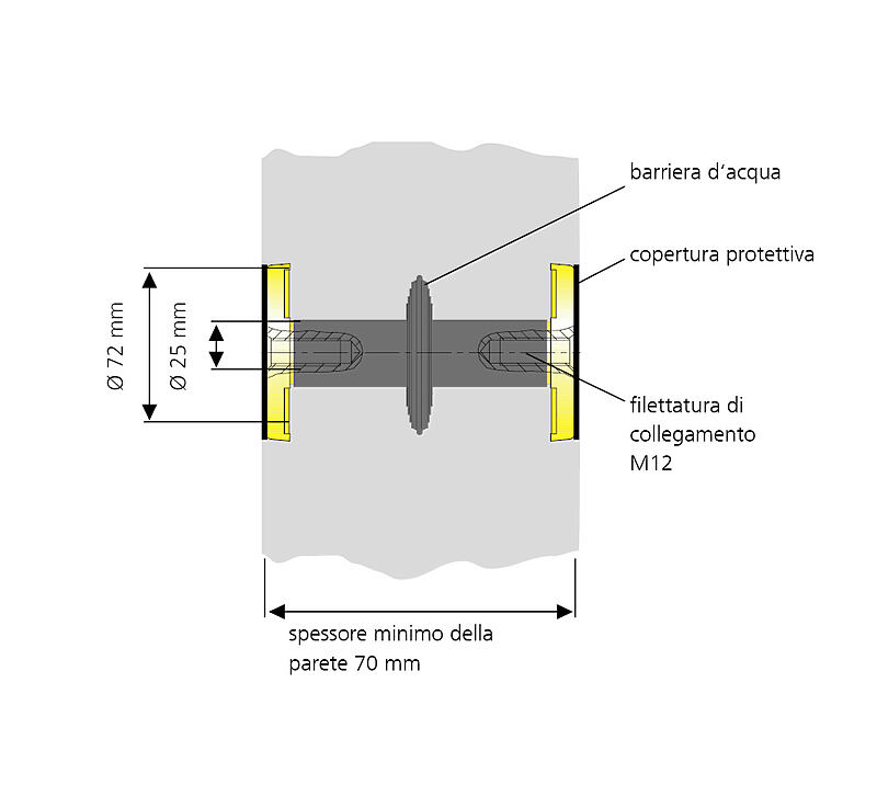 Realizzato specificamente per la costruzione di stazioni elettriche. Il montaggio viene effettuato durante gli interventi per la cassaforma. Sulla filettatura bilaterale al centro del conduttore isolato elettricamente è possibile realizzare delle connessioni di messa a terra per l'edificio.