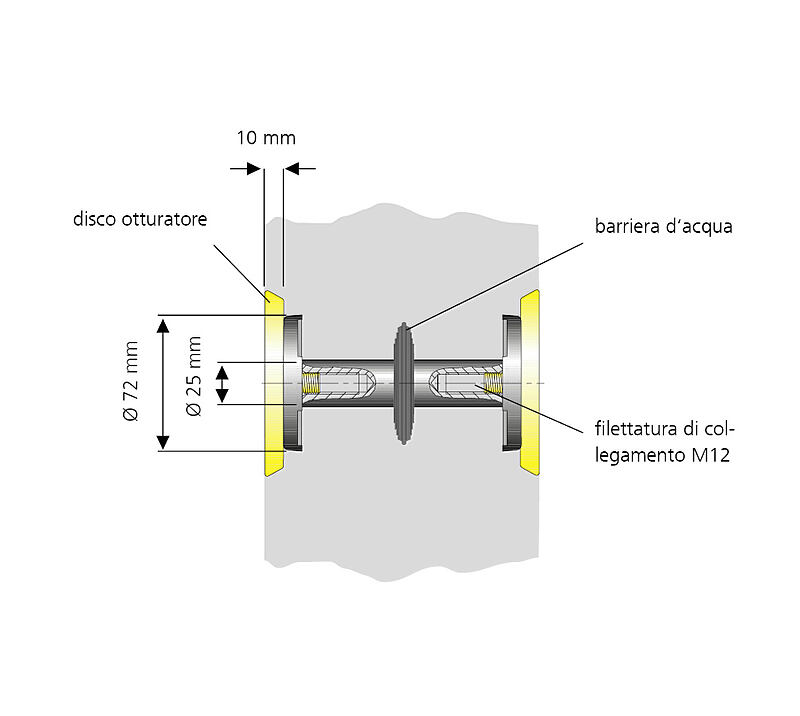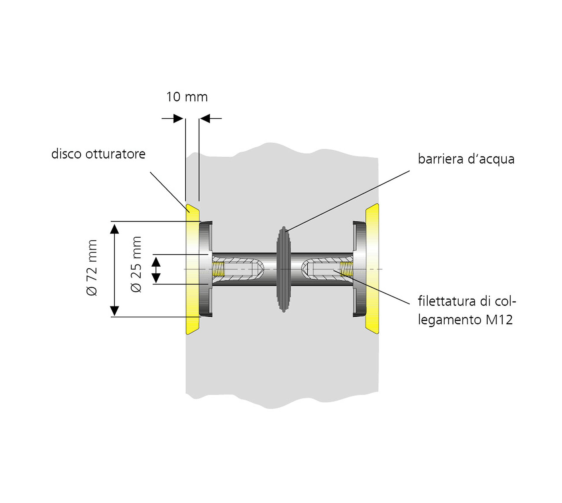 • filettatura di collegamento bilaterale impermeabile (foro cieco)