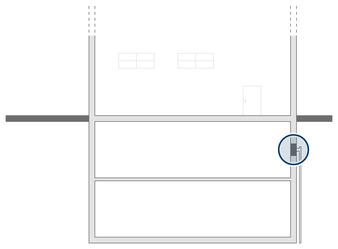 La guarnizione a parete viene effettuata su entrambi i lati tramite una guarnizione superficiale che viene pressata sulla parete con dei dadi. Tramite un'aletta di collegamento con morsetto incrociato è …