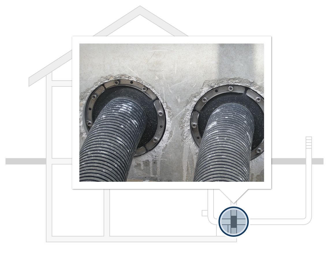 Grazie alla combinazione di flangia di raccordo e guarnizioni a 3 nervature, consente la guarnizione di tutti i tipi di muri.